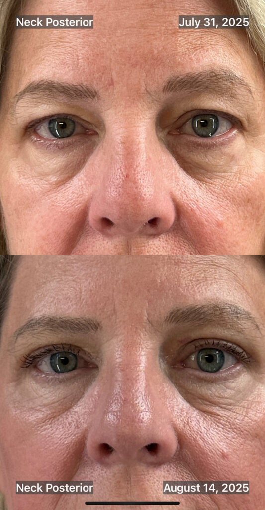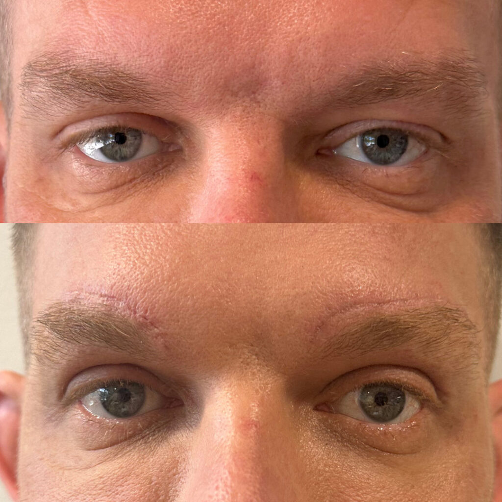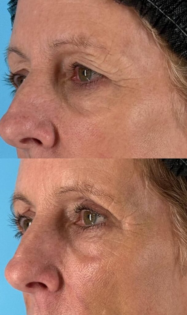 How Blepharoplasty Helps: When performed in conjunction with skin tightening, blepharoplasty smooths the area around the eyes by removing excess skin and redistributing remaining tissue. The overall tightening effect significantly reduces the appearance of lines and creates a more refined eye contour. Many patients combine blepharoplasty with other treatments for more well-rounded results.